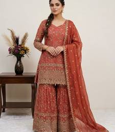 | Product Description | Beautiful Red Sharara Suit Designed With Detailed Gold Embroidery And Intricate Craftsmanship. The Kurta Pairs With A Flared Sharara And Elegant Dupatta For A Stunning Festive Appearance. Ideal For Weddings, Parties, And Celebrations. Rich Color, Delicate Embellishments, And Graceful Design Create A Luxurious Ethnic Fashion Statement. |