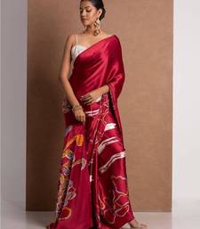 Red satin printed saree