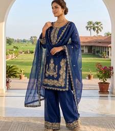 | Product Name | Royal Blue Silk Blend Embroidered Farshi Salwar Set | |