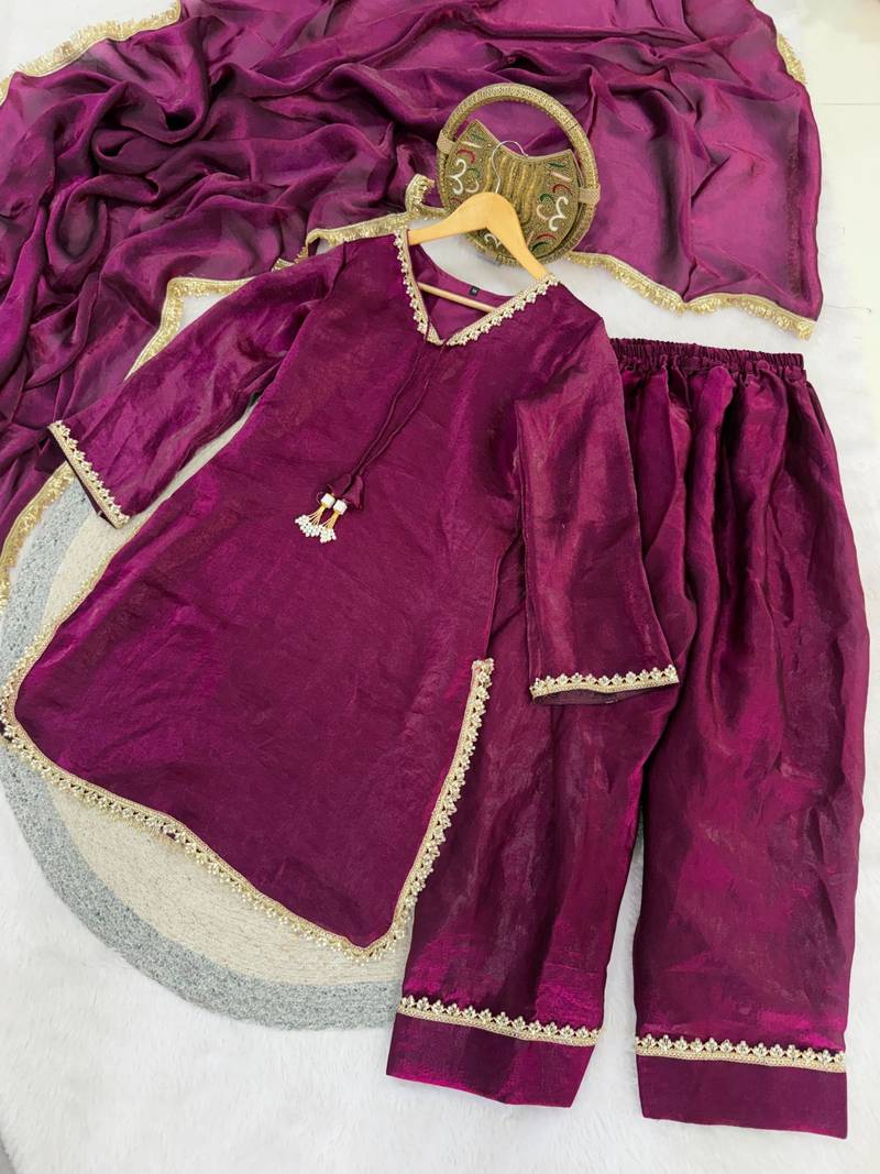 | Product Description | This Wine Silk Kurta Set Features A Smooth Texture With Elegant Lace Detailing And A Matching Palazzo. Crafted From Premium Fabric, It Offers A Rich And Luxurious Feel. Perfect For Festive Occasions And Celebrations, This Outfit Combines Deep Color With Subtle, Sophisticated Design. |