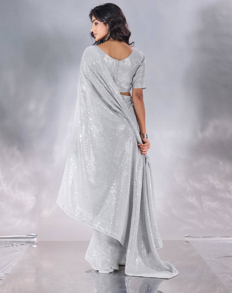 Pure georgette embellished sequinned party wear saree
