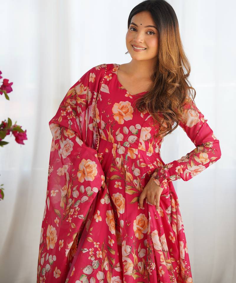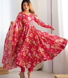 Pure soft organja silk fully flair kali and canvas patta with duppta set ,pent ready to wear stitched