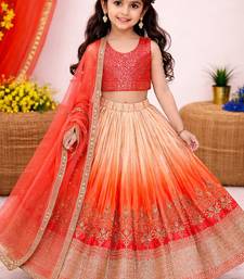 Designer chinon silk embroidered work wedding lehenga choli for kids