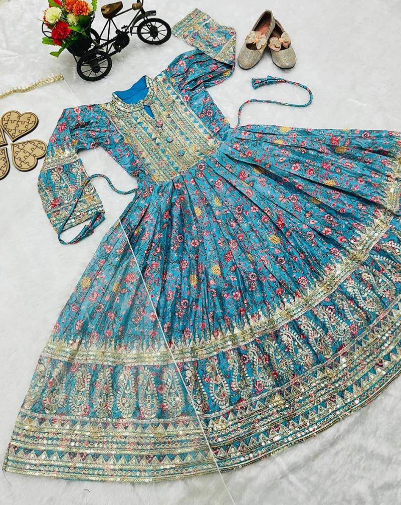 | Product Name | Kids Chinon Silk Digital Print With Embroidered Work Wedding Gown | |