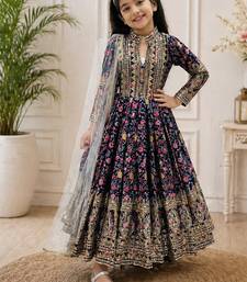 Kids chinon silk digital print with embroidered work wedding gown