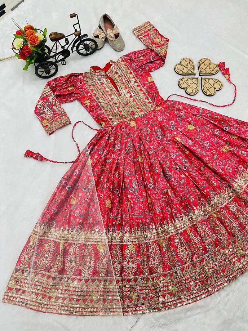 | Product Name | Kids Chinon Silk Digital Print With Embroidered Work Wedding Gown | |