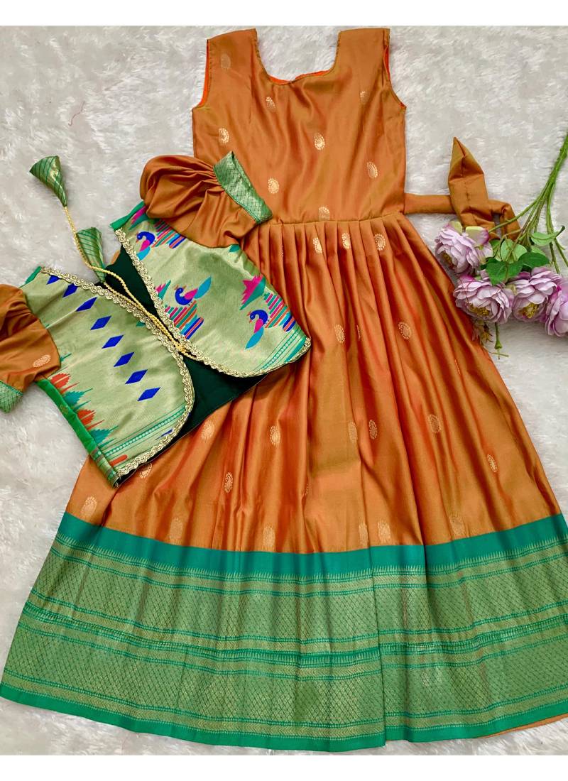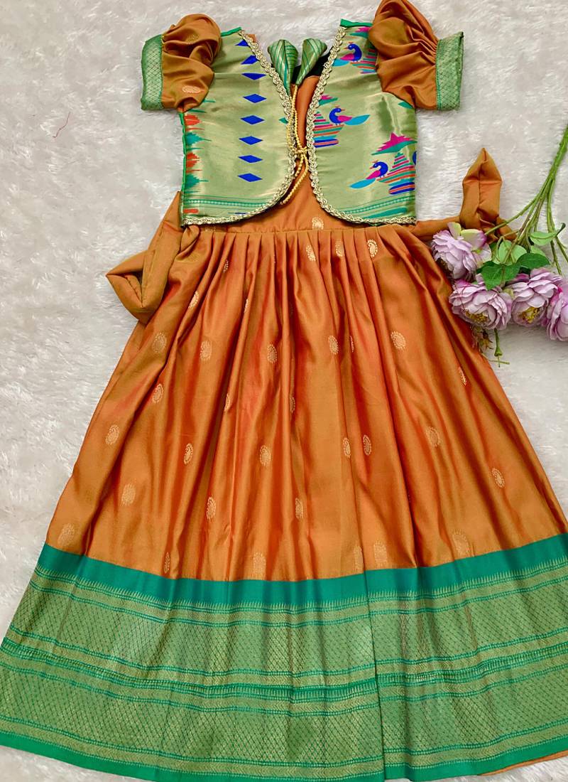 Soft paithani silk zari weaving pavadai for kids gown & koti