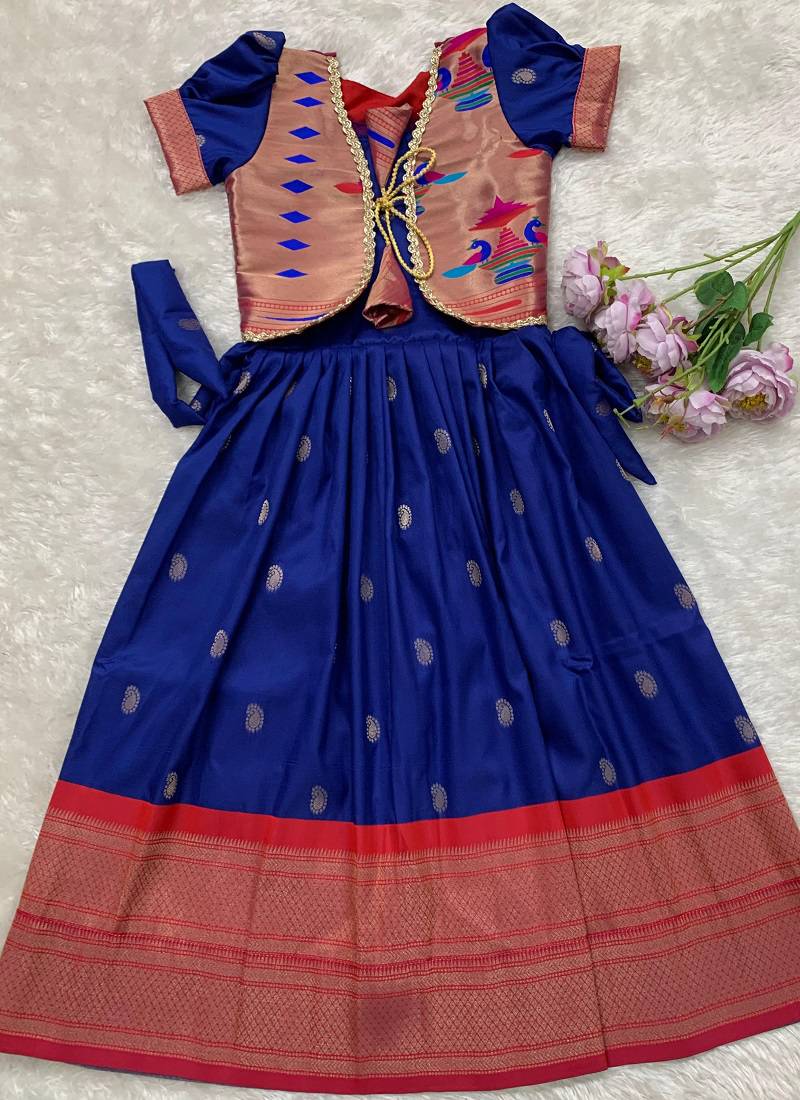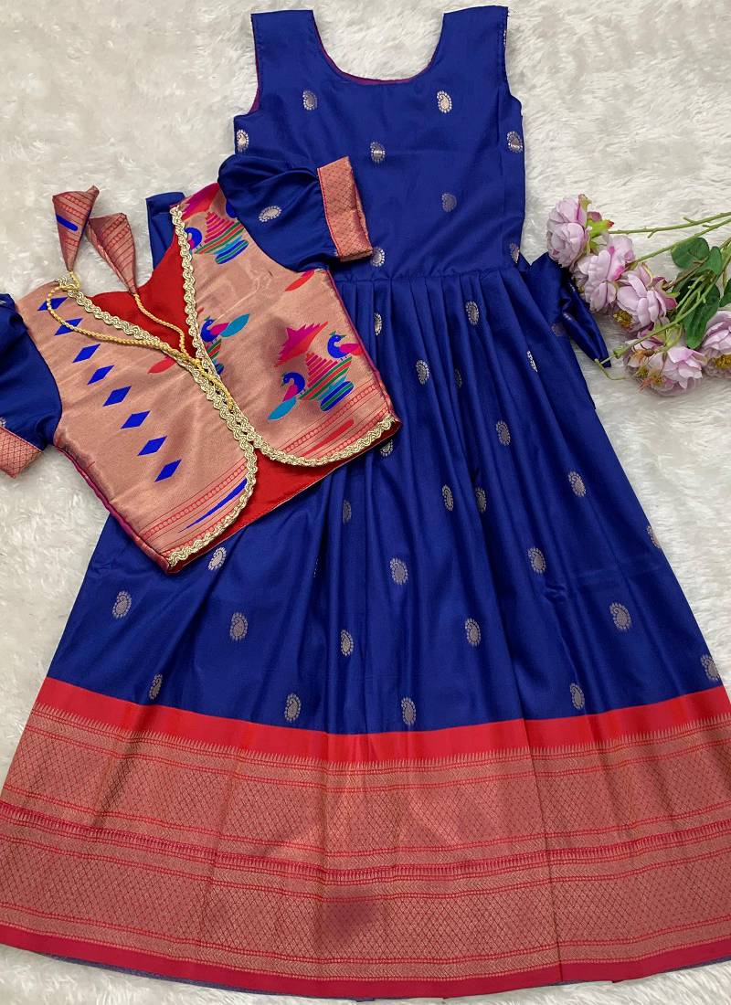 Soft paithani silk zari weaving pavadai for kids gown & koti