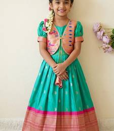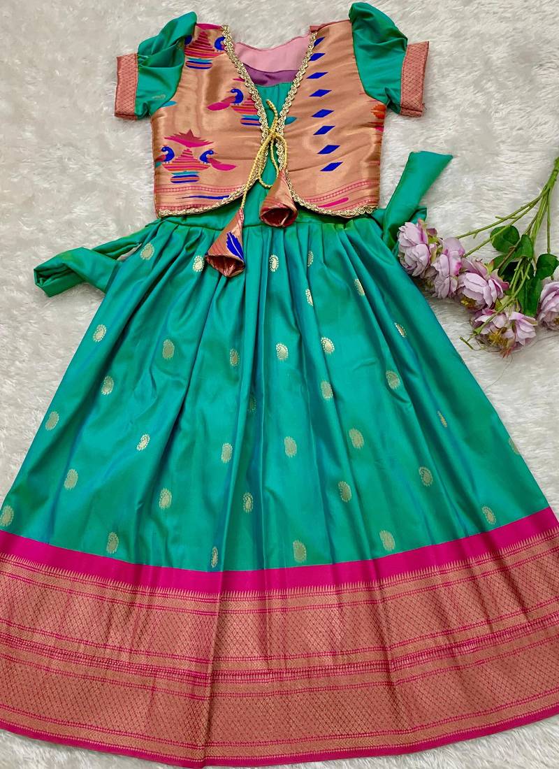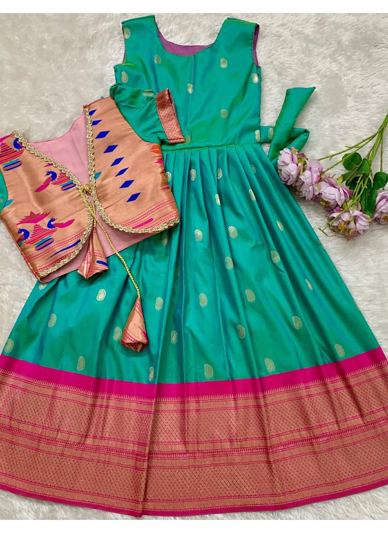 Soft paithani silk zari weaving pavadai for kids gown & koti
