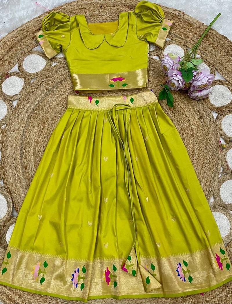 | Product Name | Soft Silk Paithani Design Zari Weaving Pavadai For Kids | |