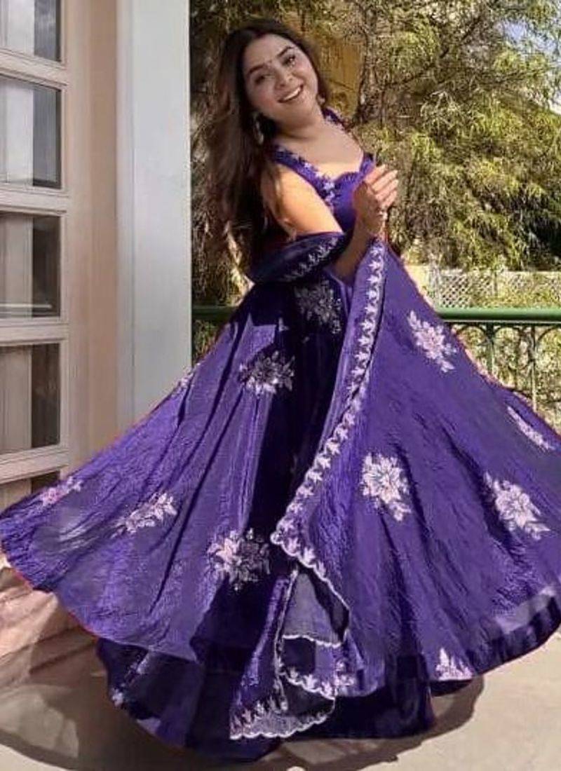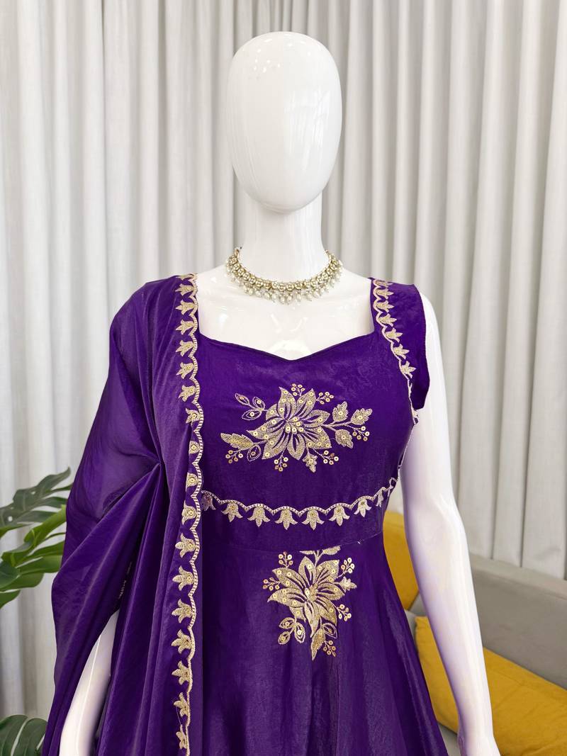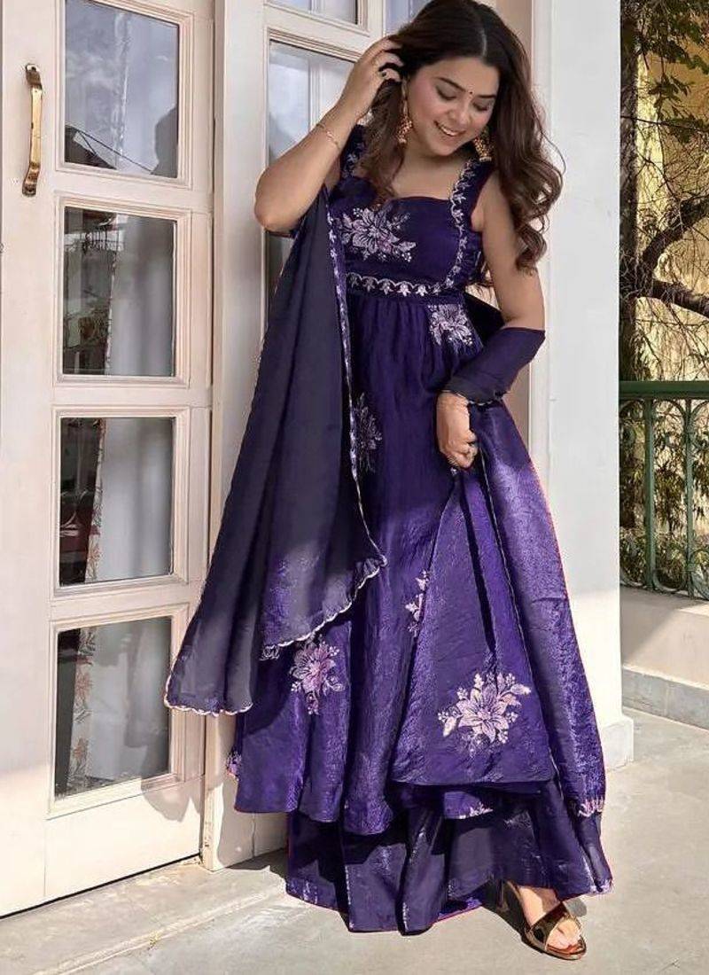 | Product Name | Purple Fendy Silk Flared Gown Sharara Set With Sequence Embroidery & Dupatta | |
