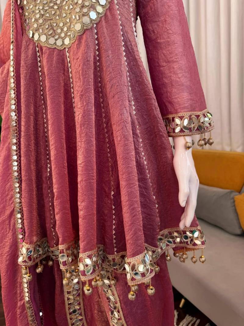 | Product Name | Rose Gold Crush Dhoti Style Suit Set With Real Mirror Work | |