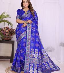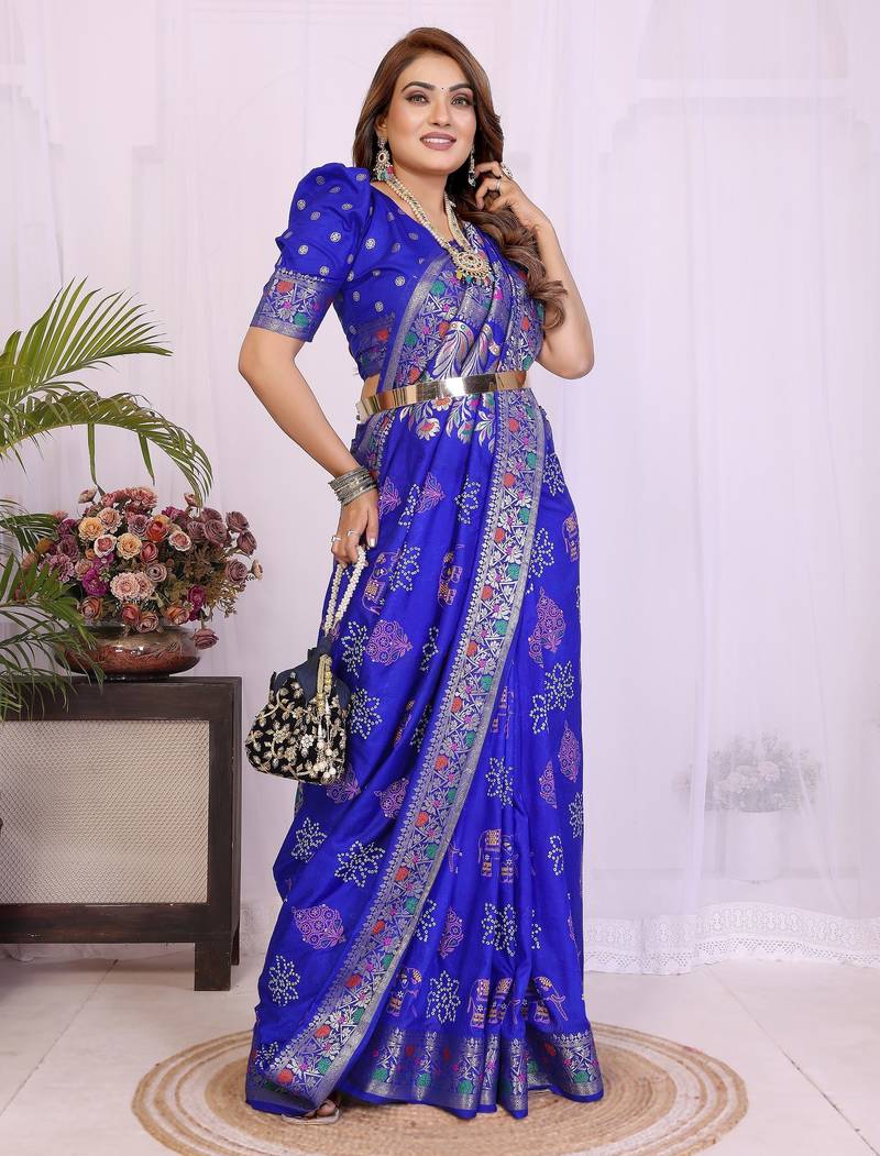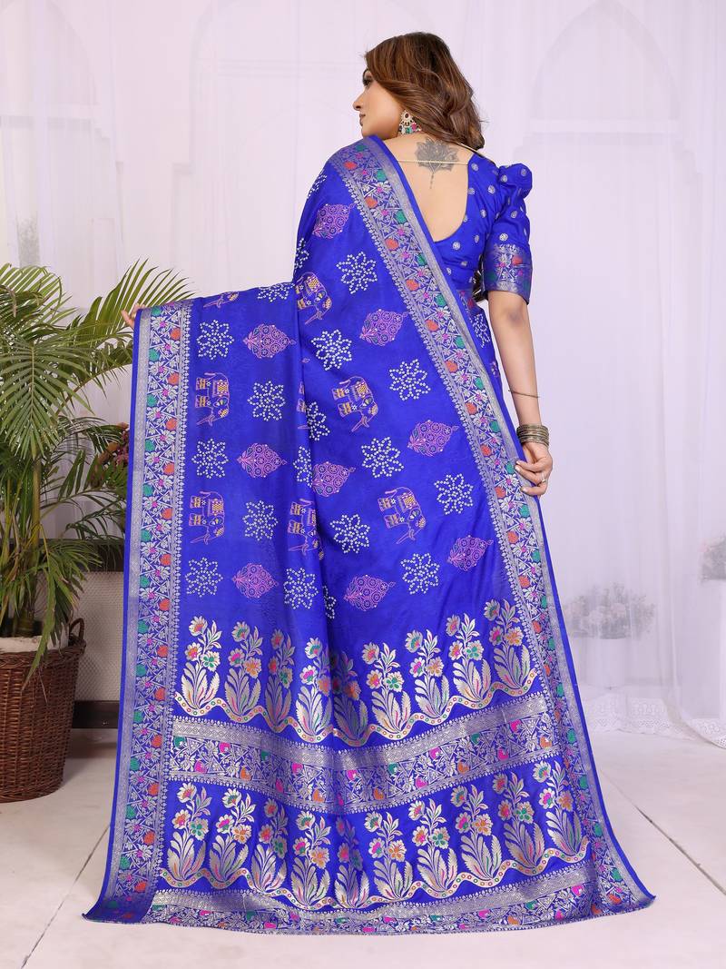 Blue dola silk bandhej print zari weaving saree with matching blouse piece