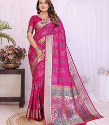 | • | Saree | : | Color- Rani Pink / Fabric- Silk Blend |