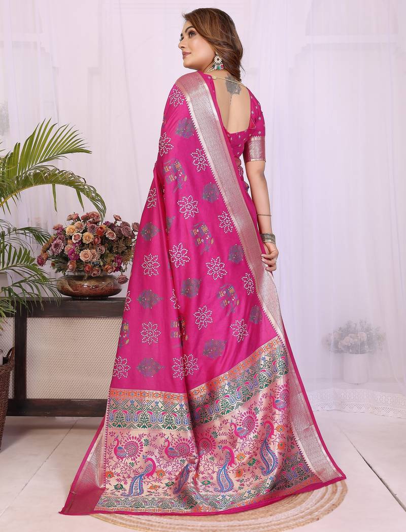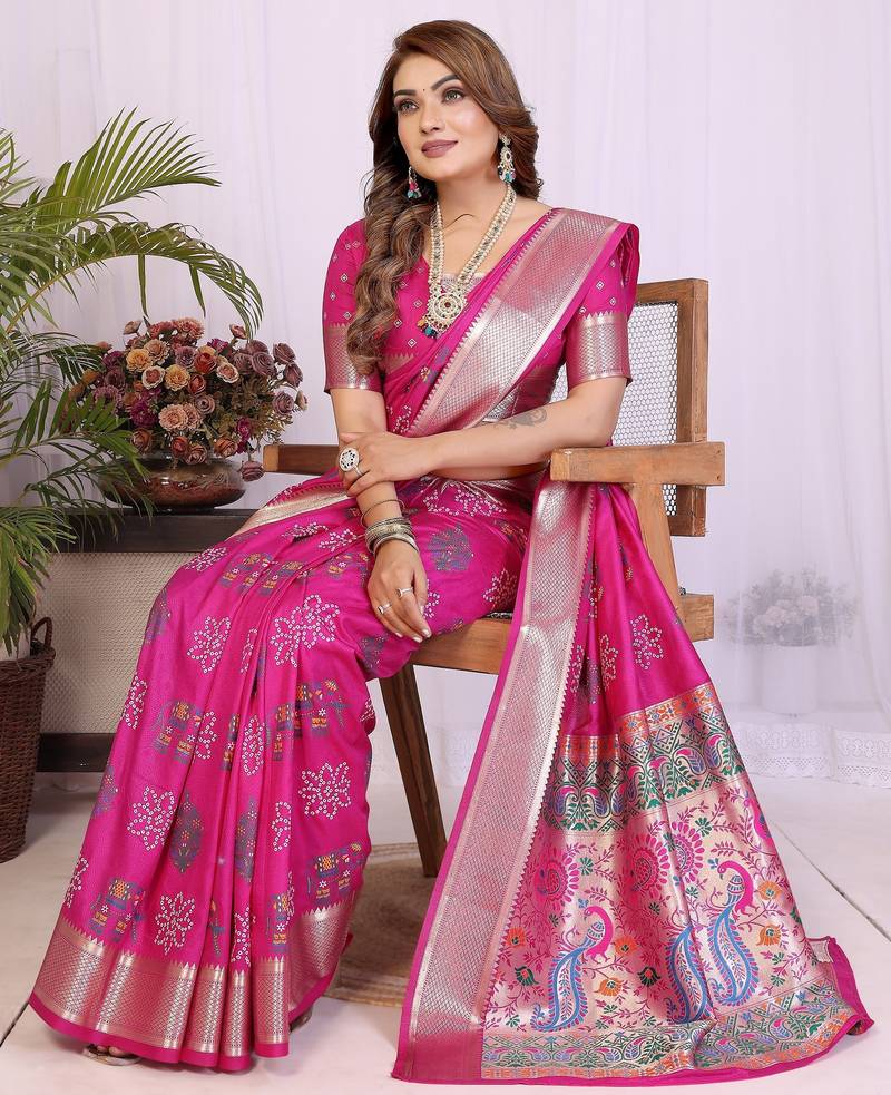 Pink dola silk bandhej print zari weaving saree with matching blouse piece