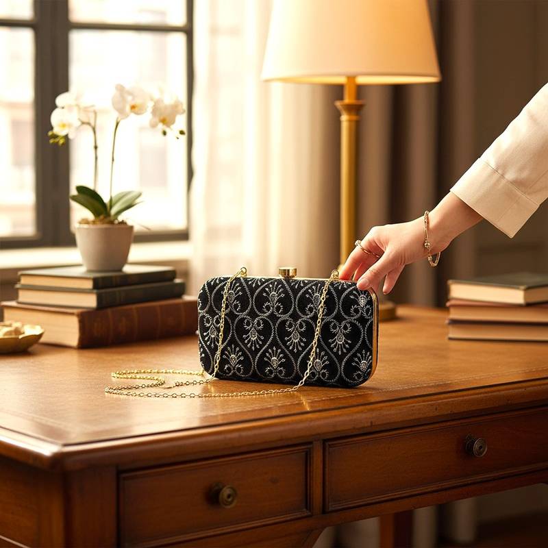 | Product Name | Black Embroidered Party Clutch | |