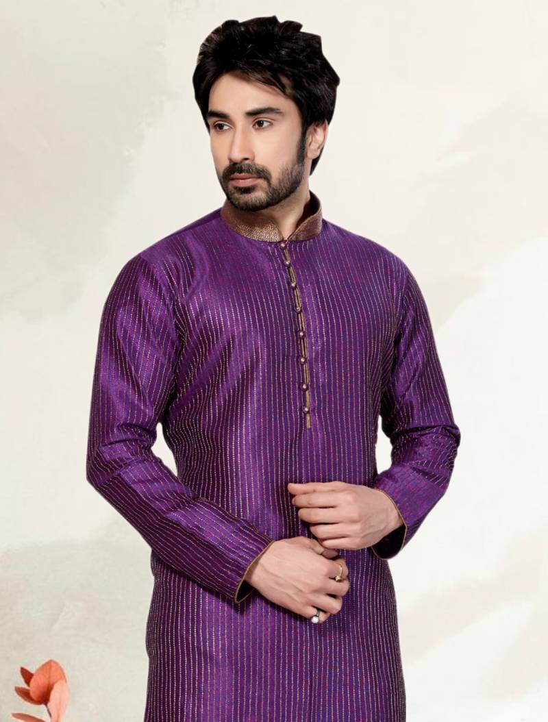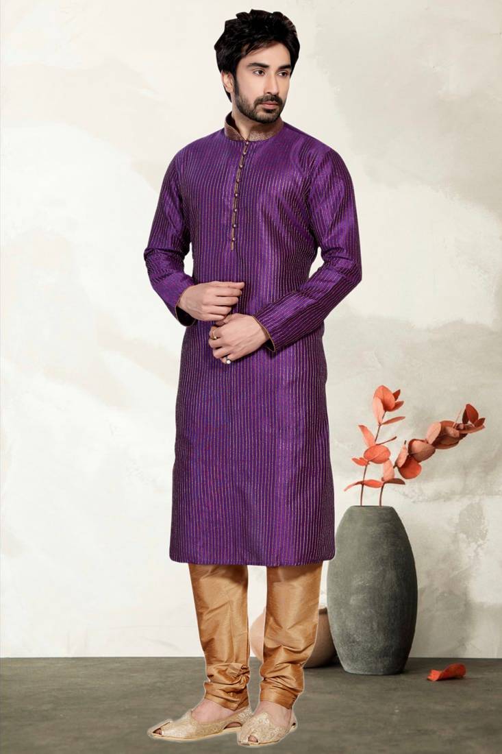 | Product Name | Indian Poshakh Purple Mix Wine Art Dupion Kurta Pajama | |
