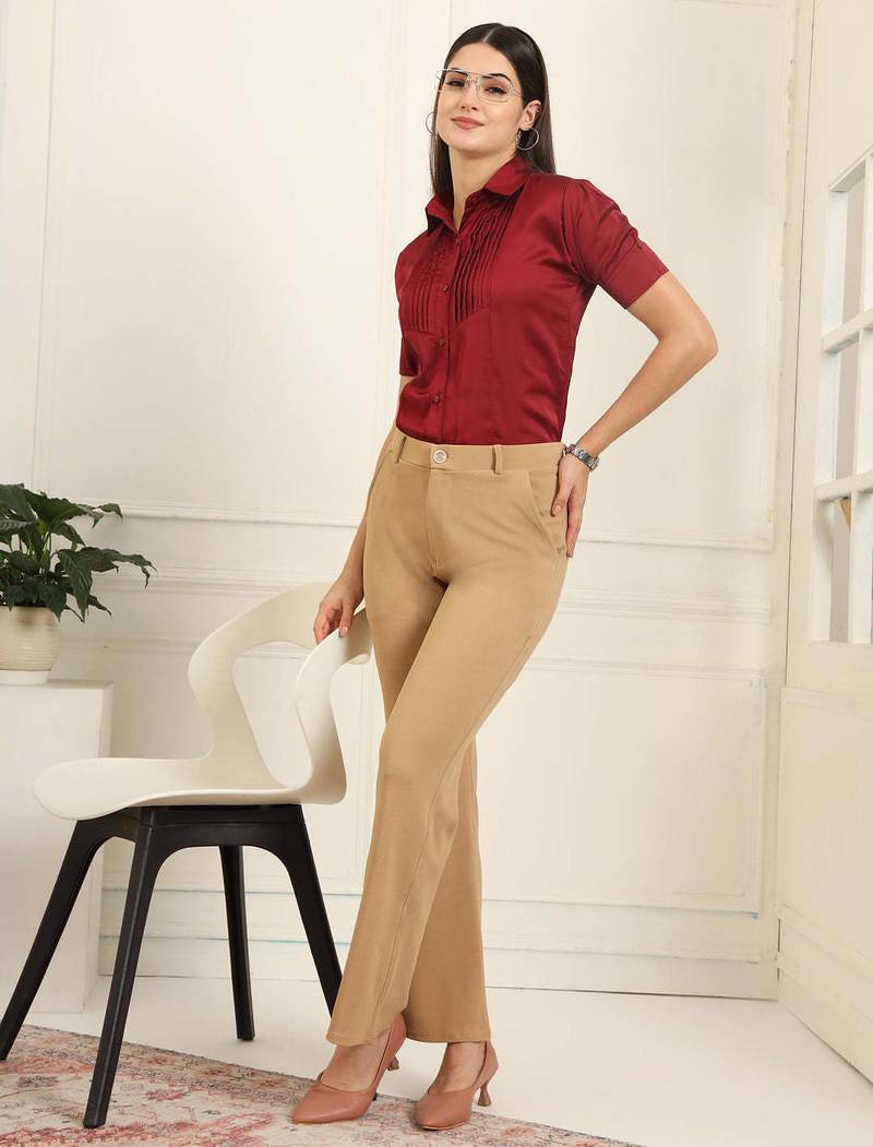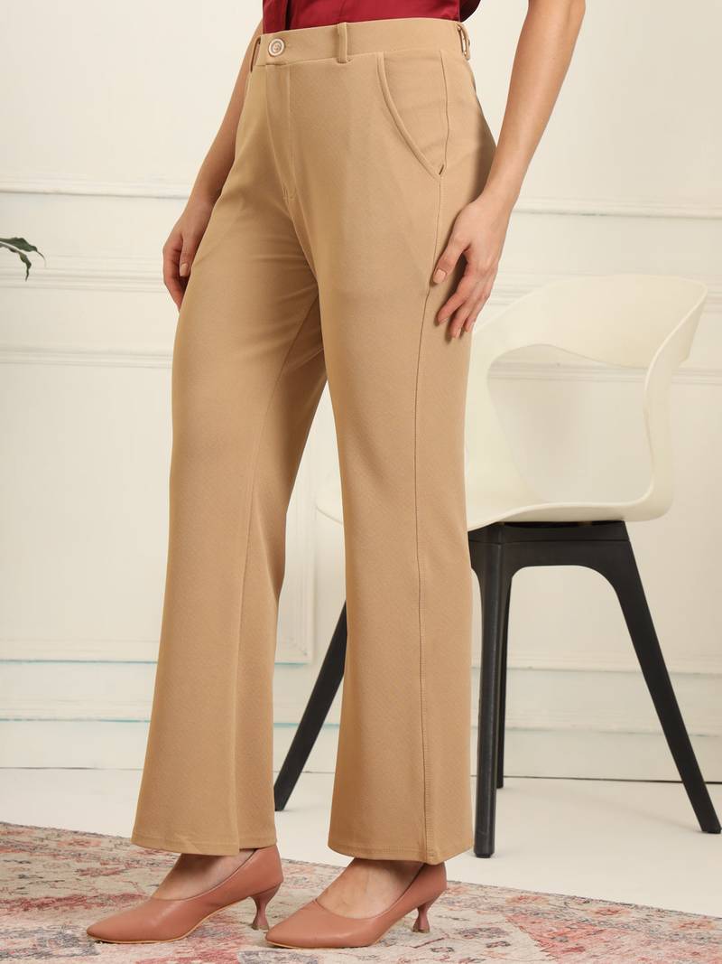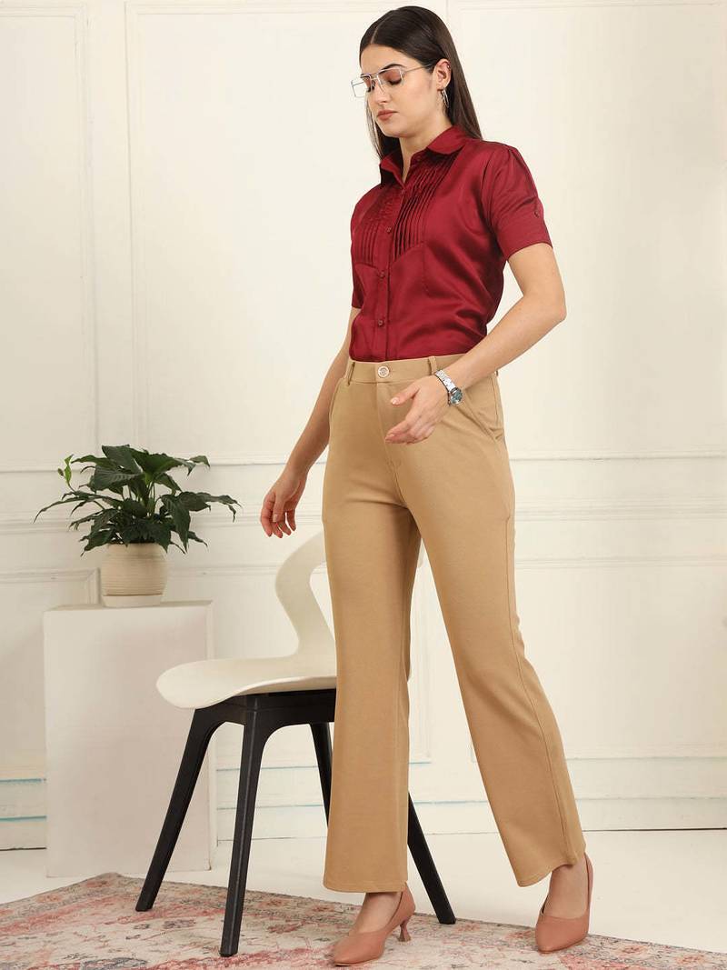 | Product Name | Women Solid Beige Regular Fit Mid Rise Flat Front Trousers | |