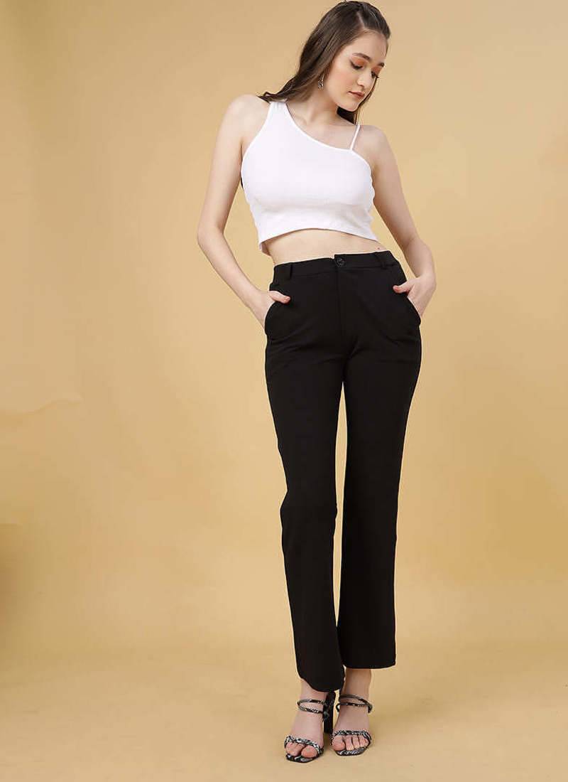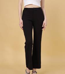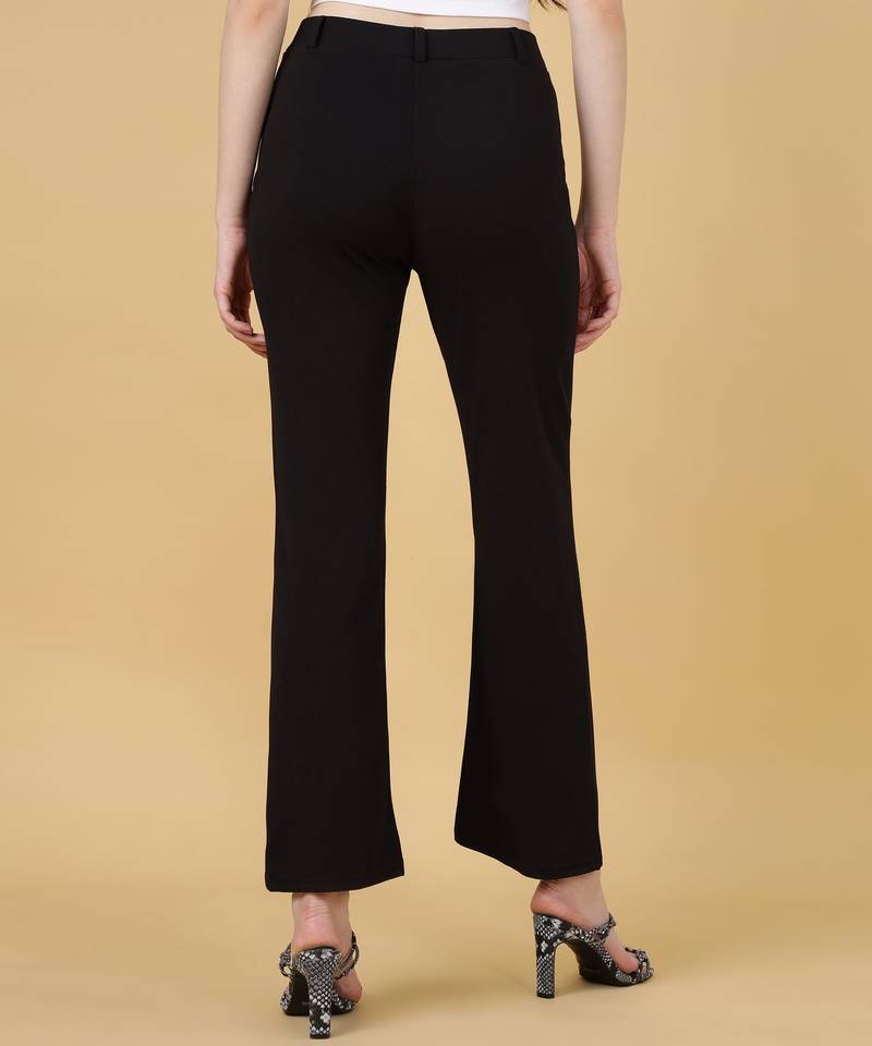 Product Name Women Solid Black Regular Fit Mid Rise Flat Front Trousers