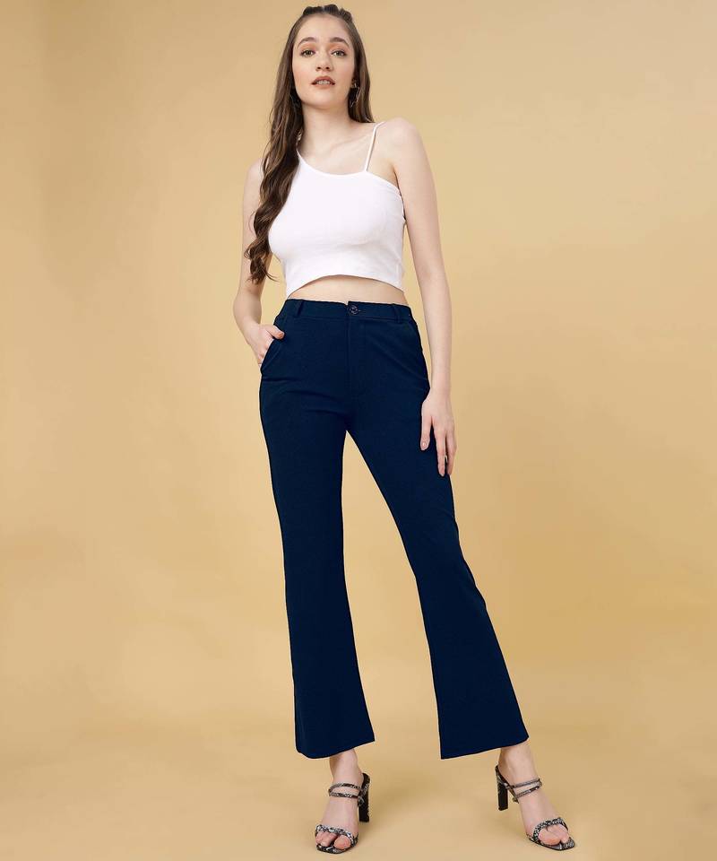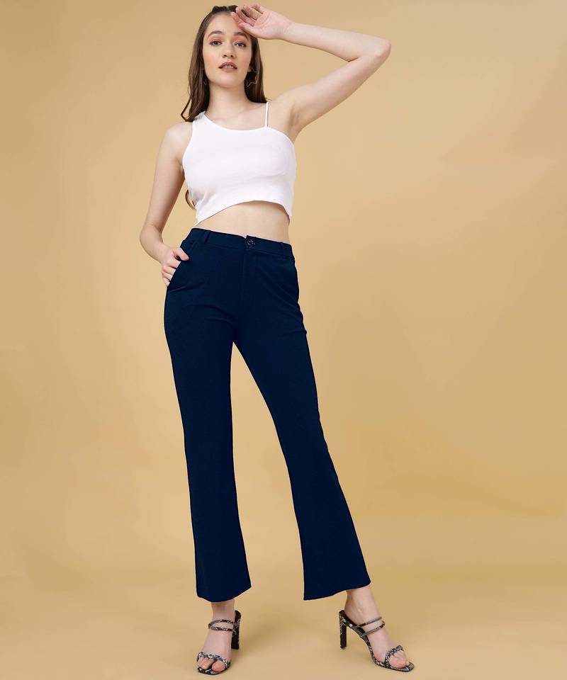 | Product Name | Women Solid Navy Blue Regular Fit Mid Rise Flat Front Trousers | |