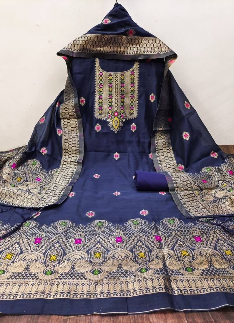 | Product Name | Blue Pure Chanderi Banarasi Silk Pure Zari Woven Design Dress Material | |