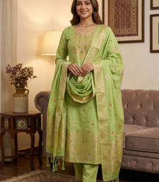 | Product Name | Pista Chanderi Banarasi Silk Zari Woven Design Dress Material | |