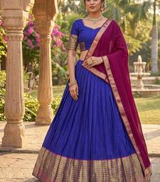 Royalblue kanchi cotton zari weaving work semi-stitched lehenga choli with dupatta