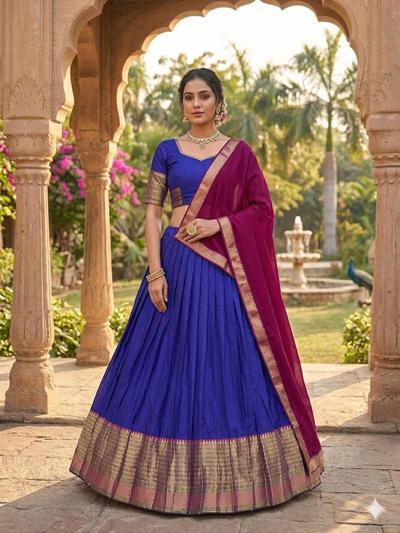 | Product Name | Royalblue Kanchi Cotton Zari Weaving Work Semi Stitched Lehenga Choli With Dupatta | |