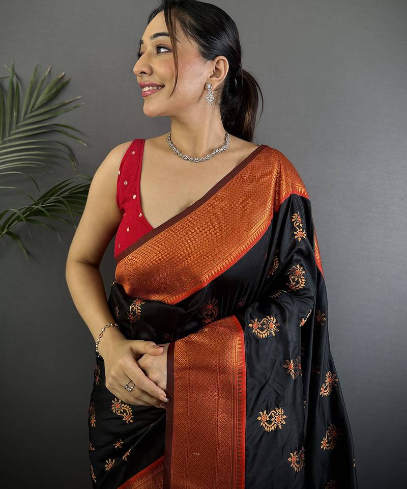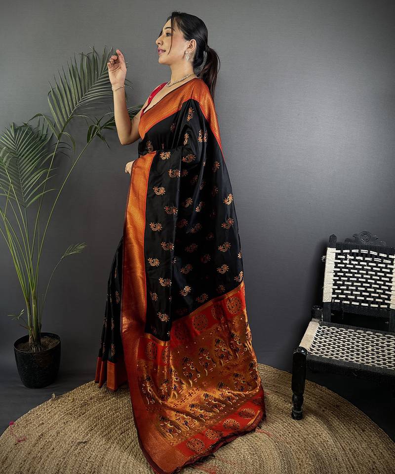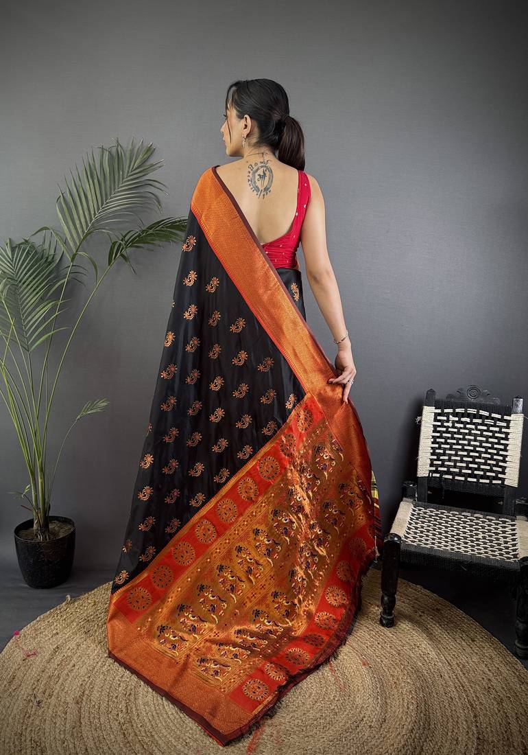 | Product Name | Women Black Nath Meenakari Weaves Soft Silk Saree | |