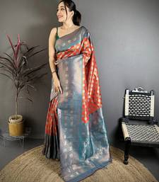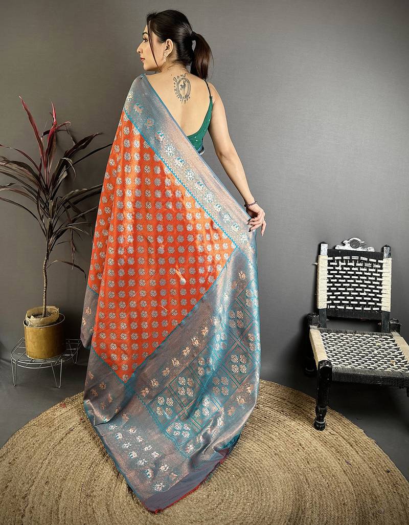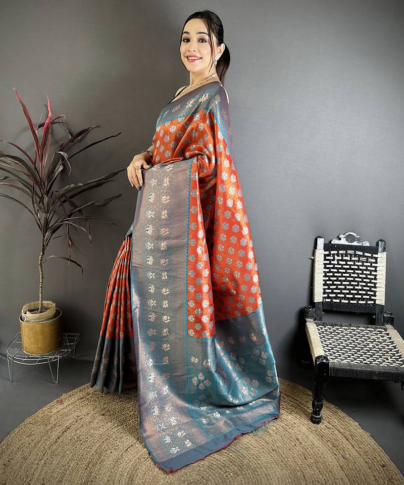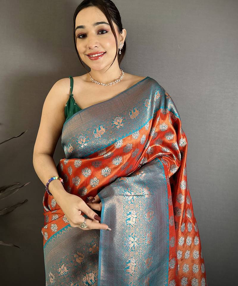 | Product Name | Women Burnt Orange Floral Design With Copper Motifs Tissue Silk Saree | |