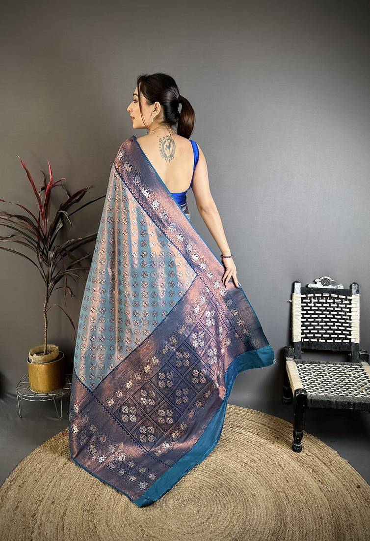 | Product Name | Women Denim Blue Floral Design With Copper Motifs Tissue Silk Saree | |