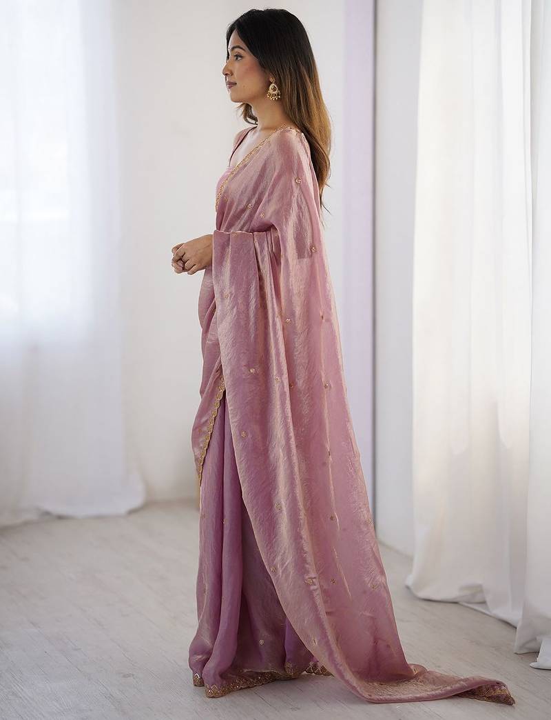 | Product Name | Women Fandy Silk Pink Zari Lace Work Saree | |