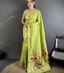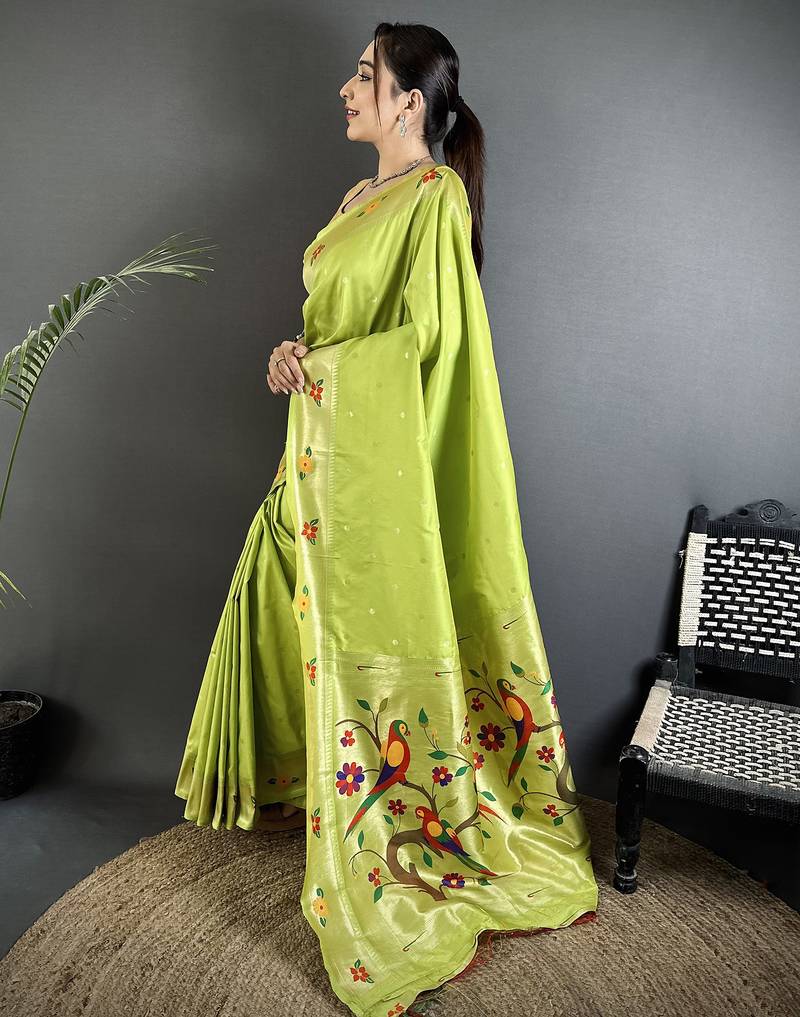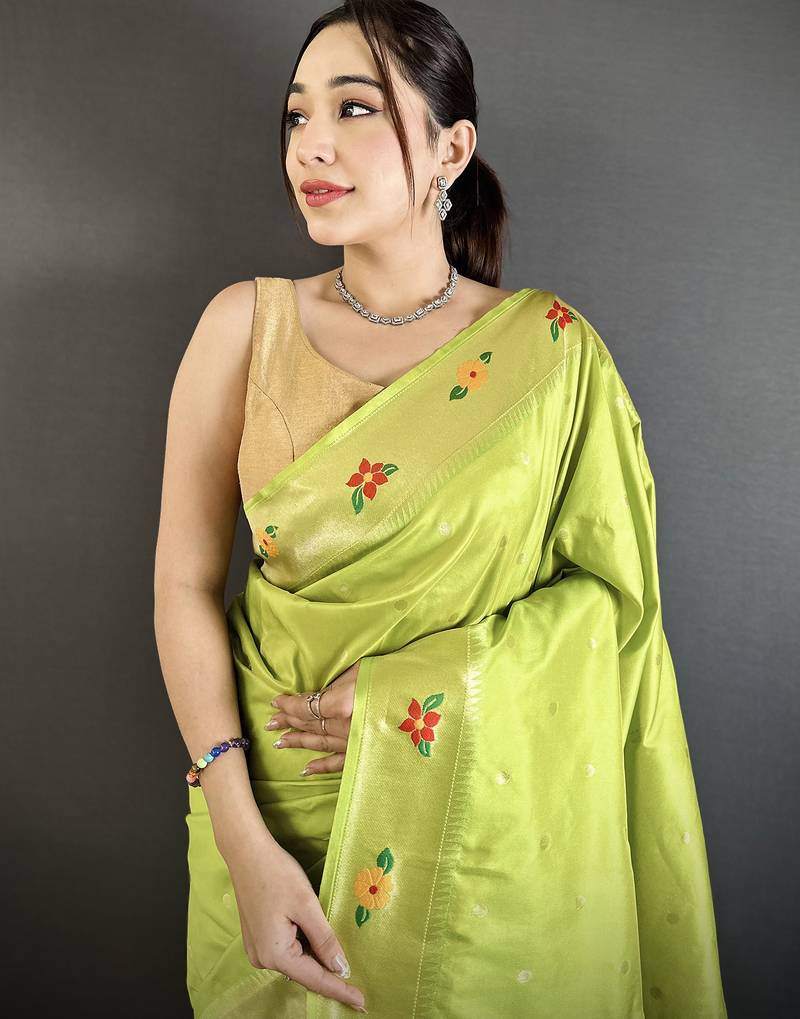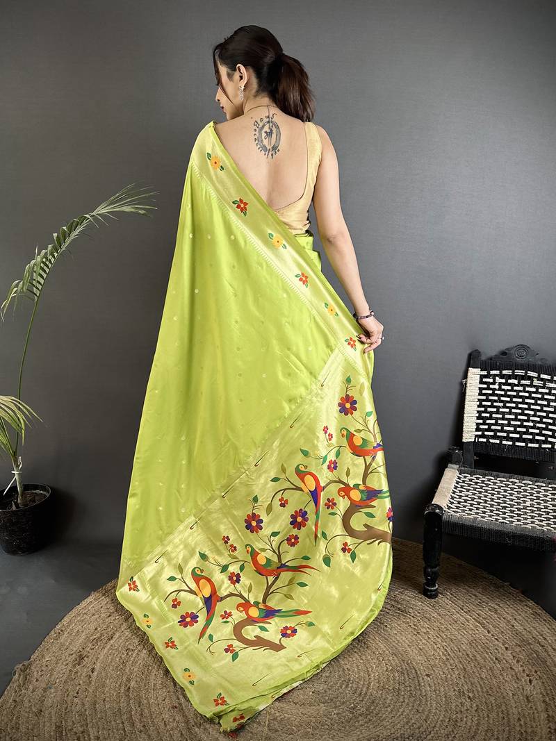| Product Name | Women Lime Green Parrot & Floral Woven Design Lichi Silk Saree | |