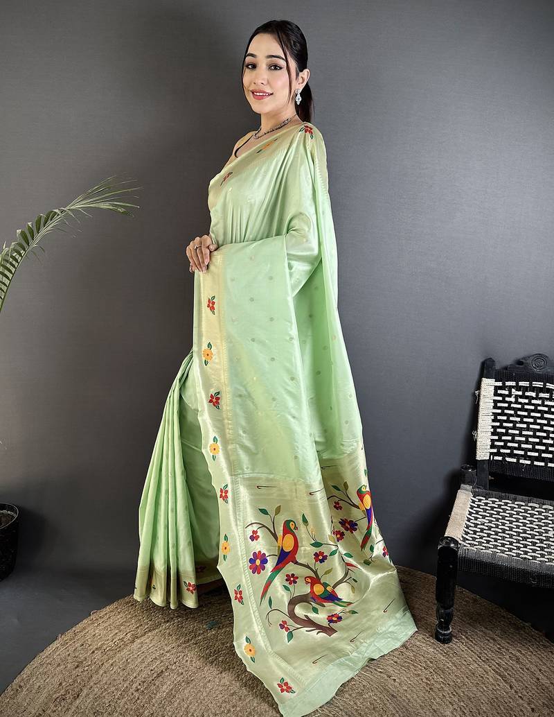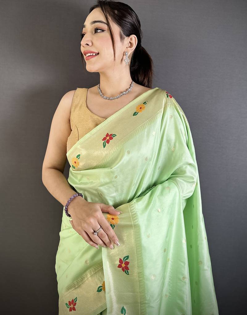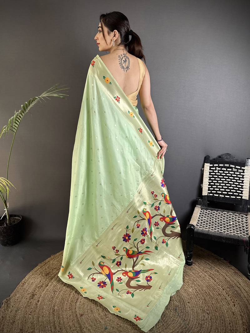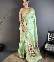 | Product Name | Women Mint Green Parrot & Floral Woven Design Lichi Silk Saree | |