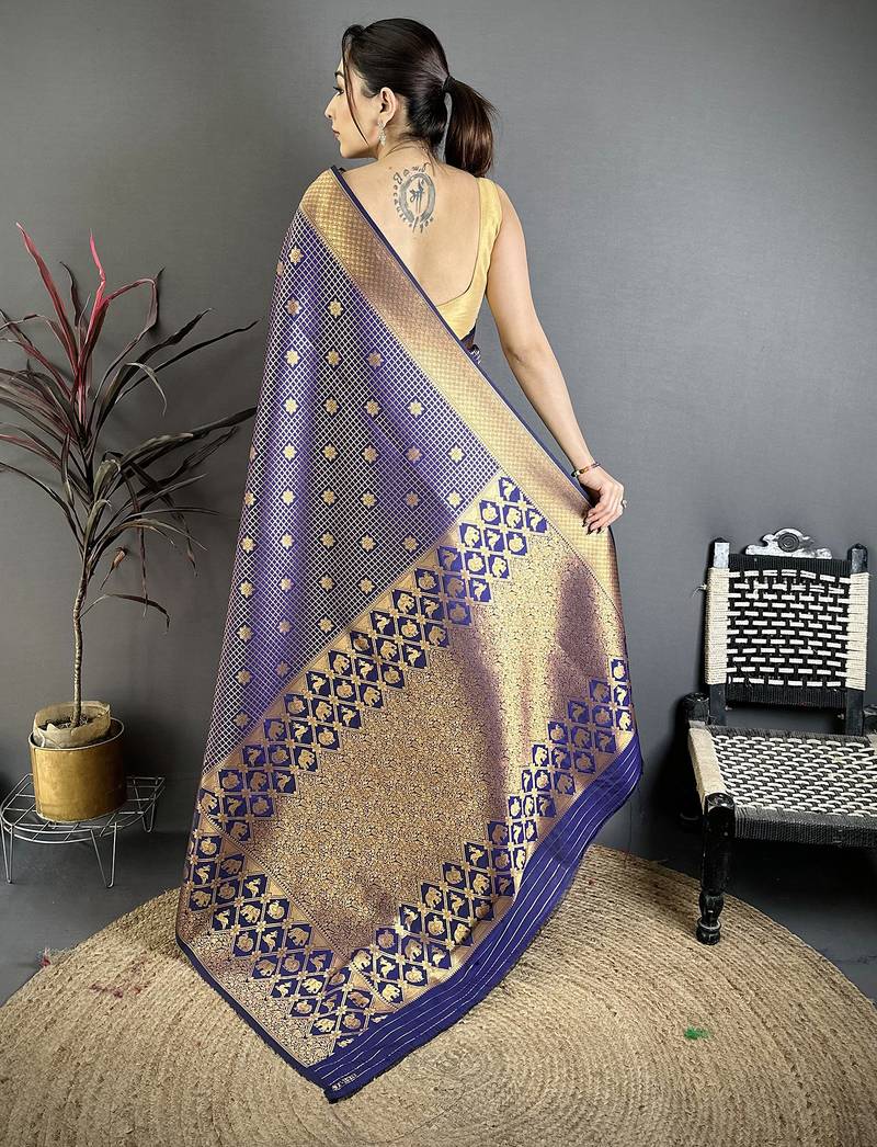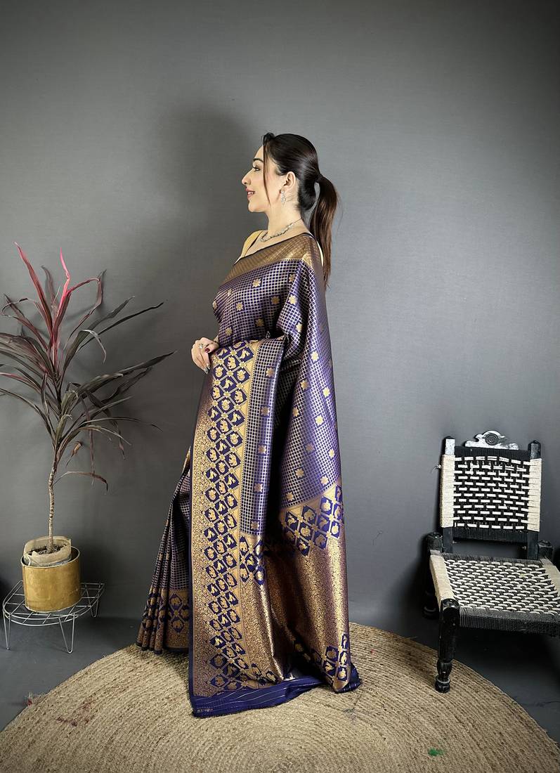 | Product Name | Women Navy Blue Checked & Floral Motifs Banarasi Soft Silk Saree | |