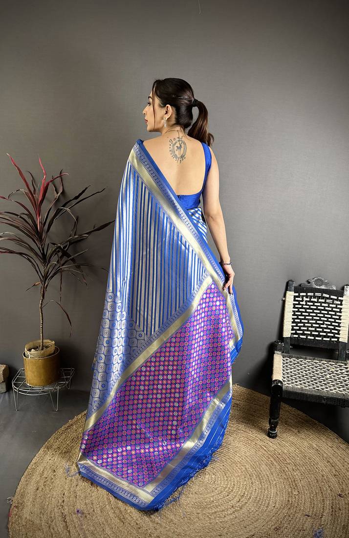 | Product Name | Women Navy Blue Geometric Pattern Soft Silk Saree | |