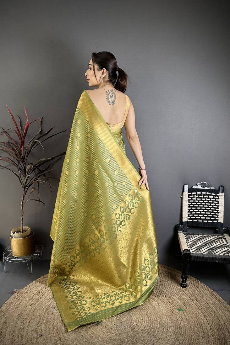| Product Name | Women Olive Checked & Floral Motifs Banarasi Soft Silk Saree | |