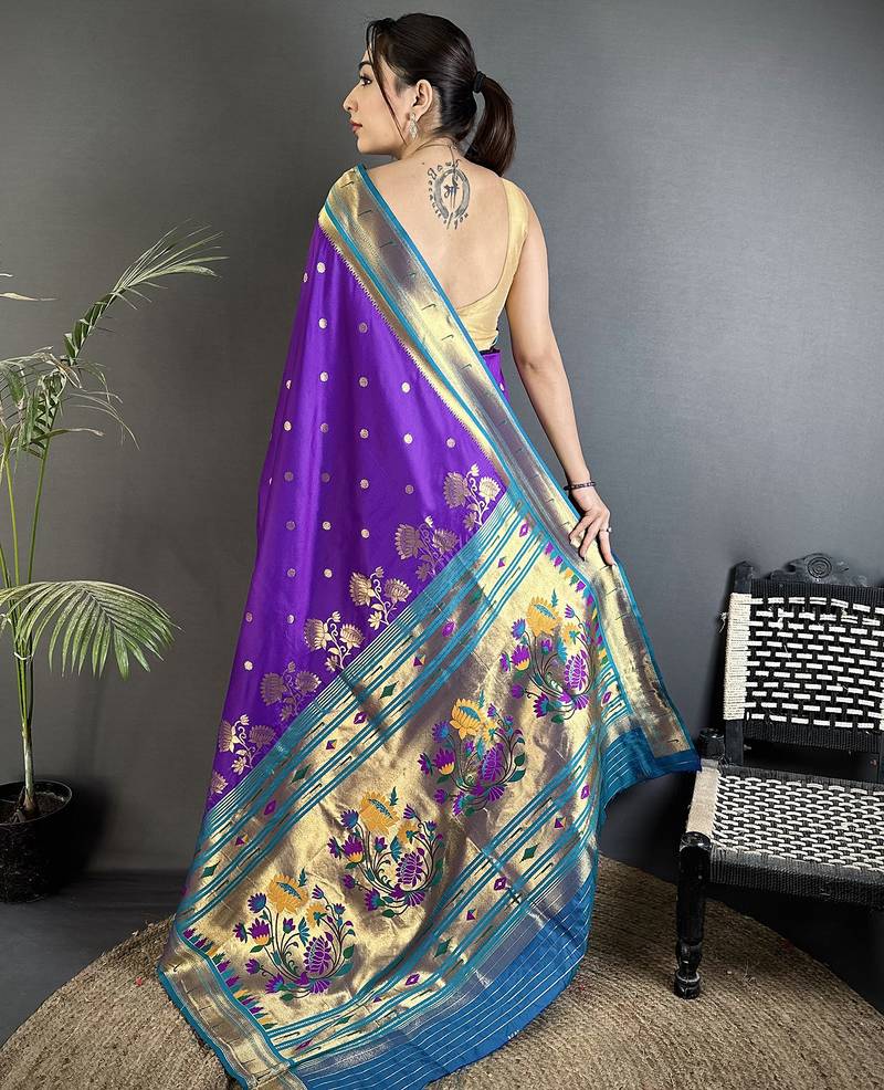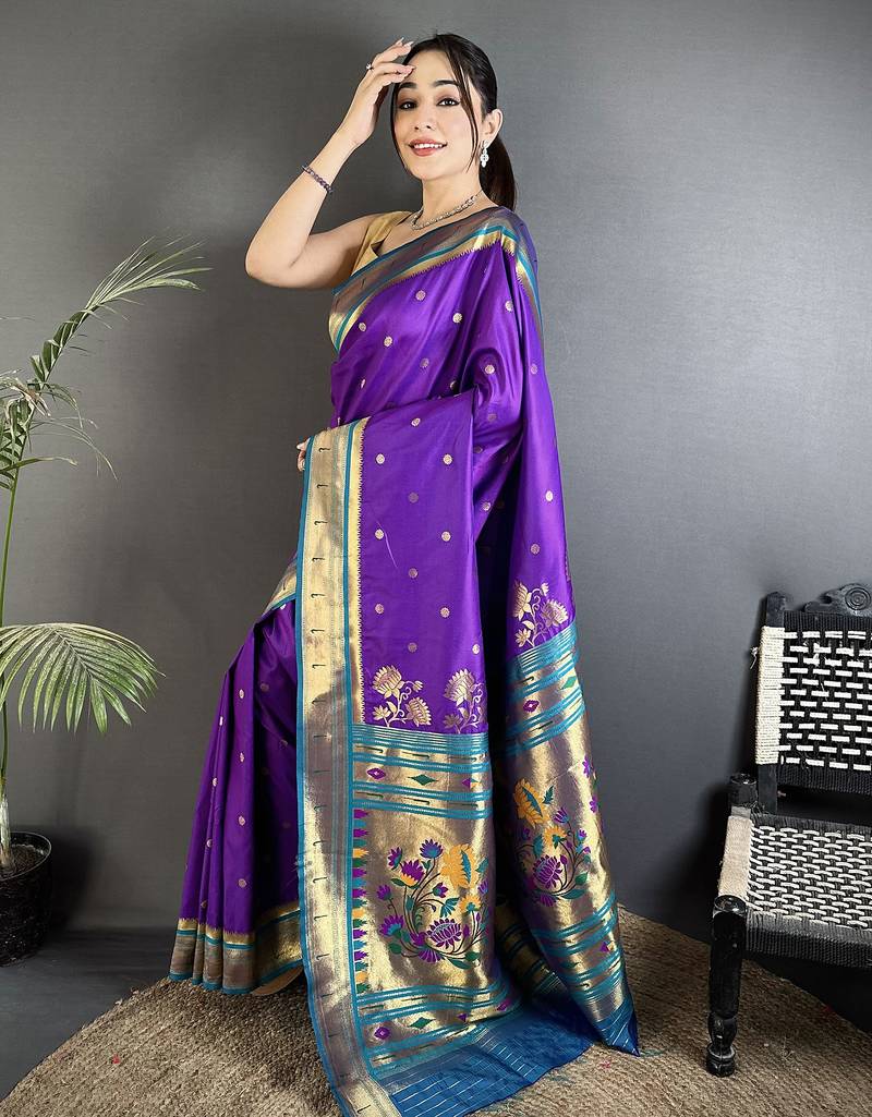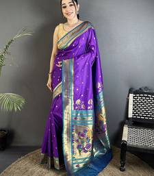 | Product Name | Women Purple Floral Motifs Lichi Silk Saree | |