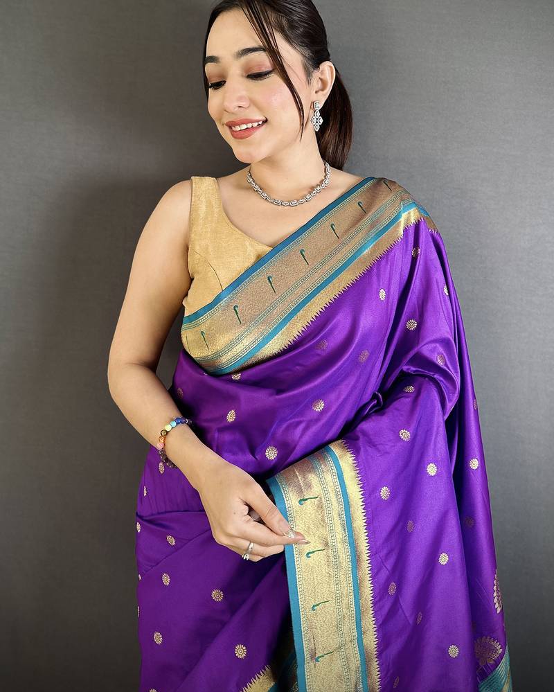 | • | Saree | : | Color- Purple / Fabric- Pure Silk Blend |