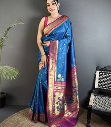 | • | Saree | : | Color- Blue / Fabric- Pure Silk Blend |