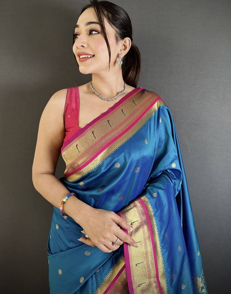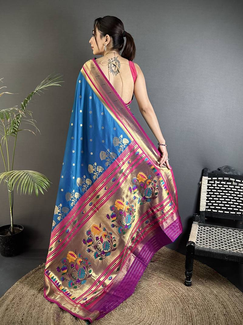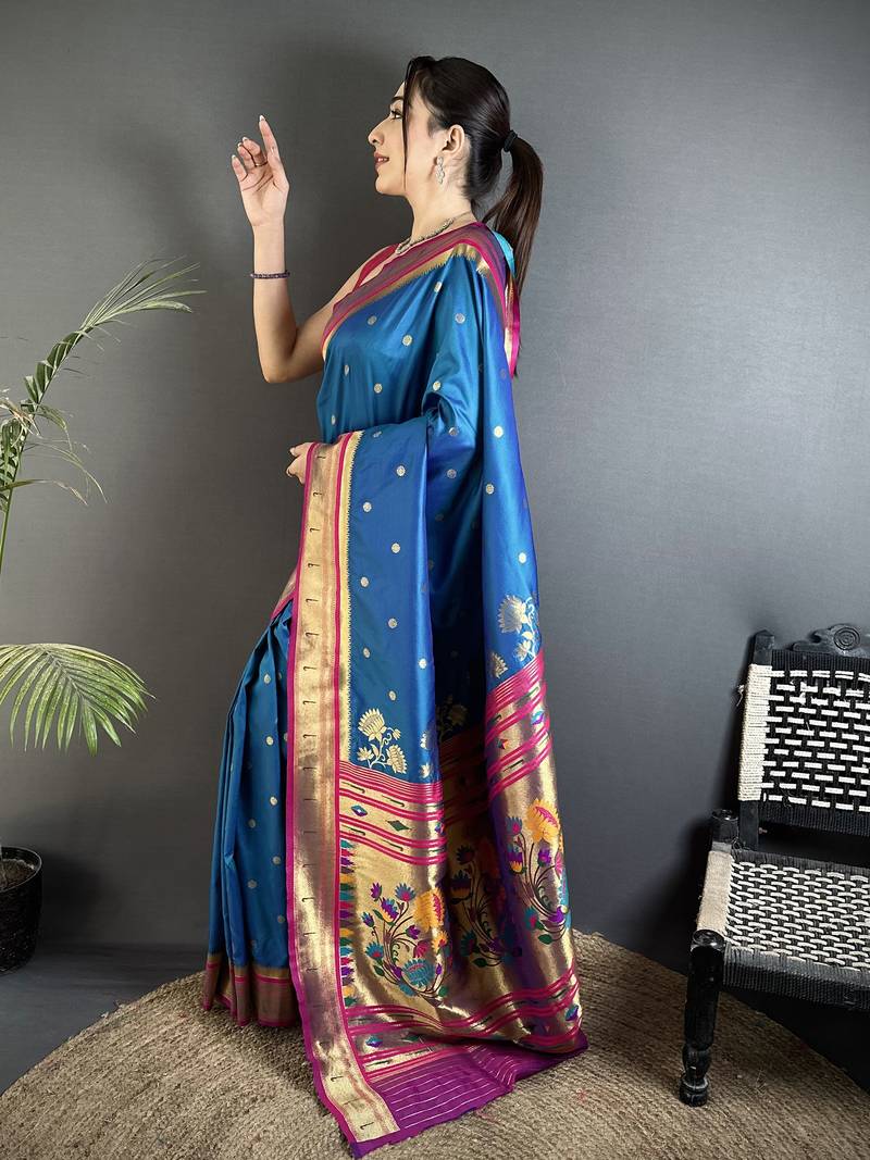 | Product Name | Women Rama Blue Floral Motifs Lichi Silk Saree | |