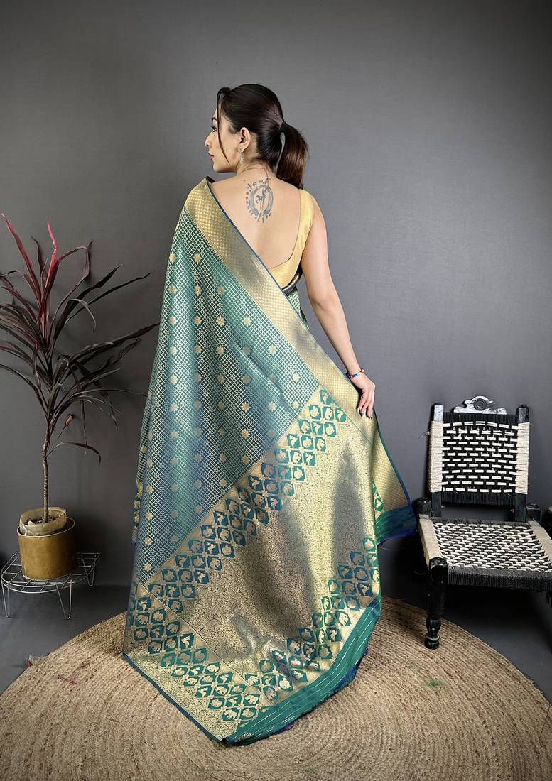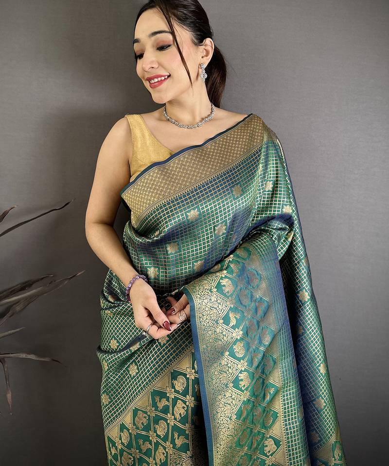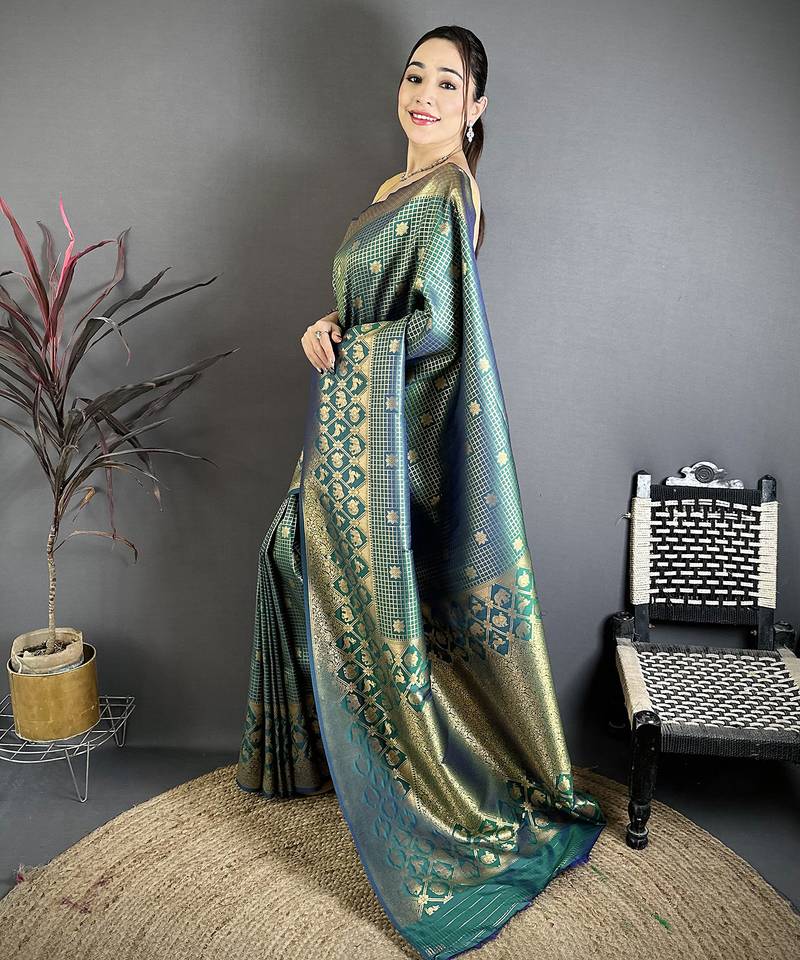 | Product Name | Women Rama Green Checked & Floral Motifs Banarasi Soft Silk Saree | |