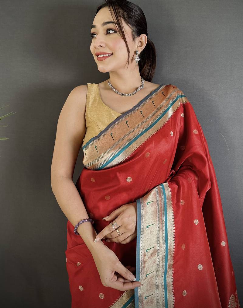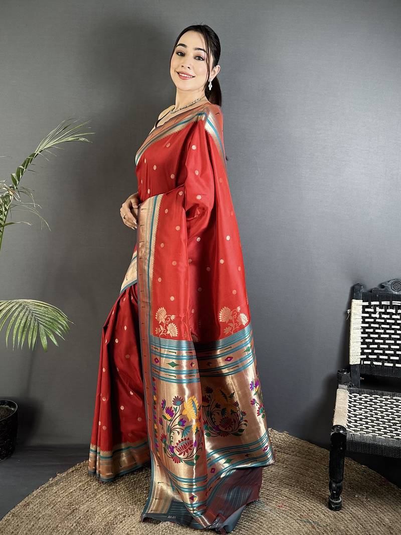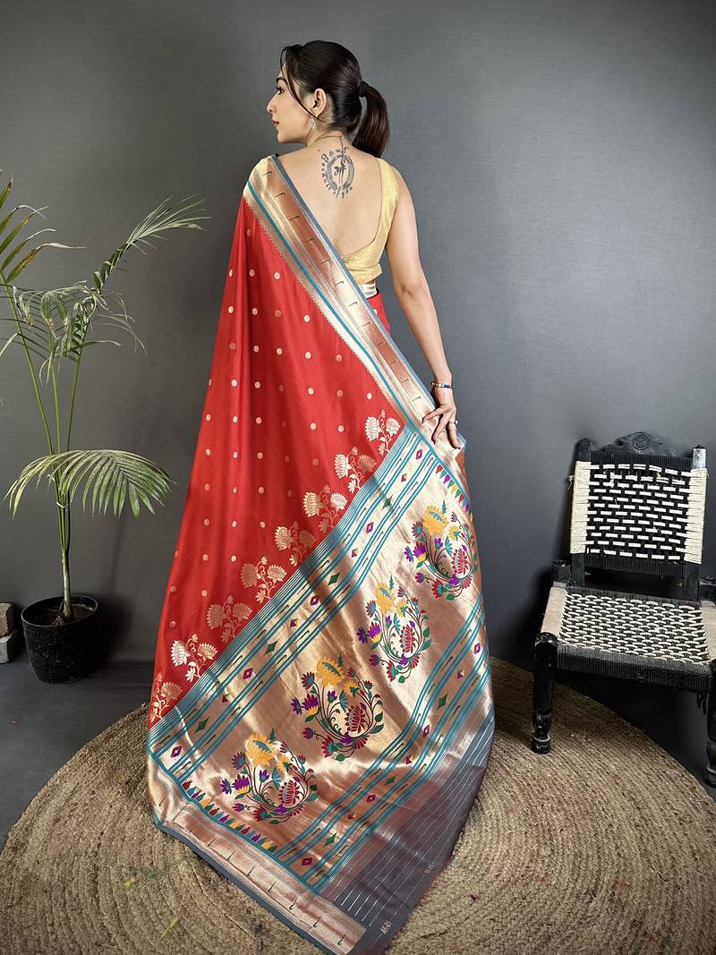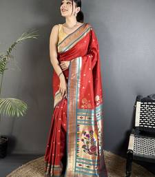 | Product Name | Women Red Floral Motifs Lichi Silk Saree | |