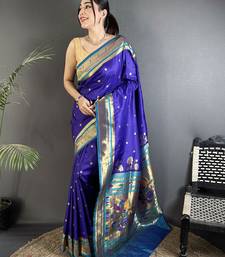 | • | Saree | : | Color- Royal Blue / Fabric- Pure Silk Blend |