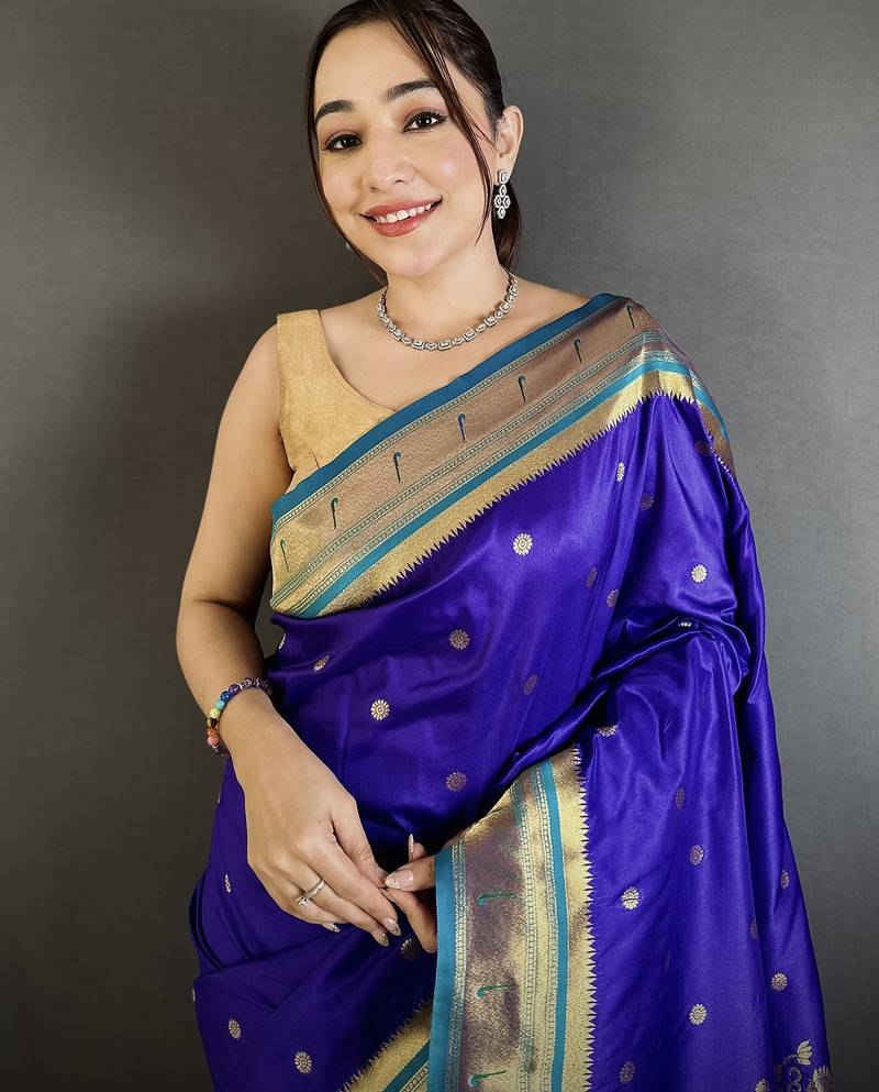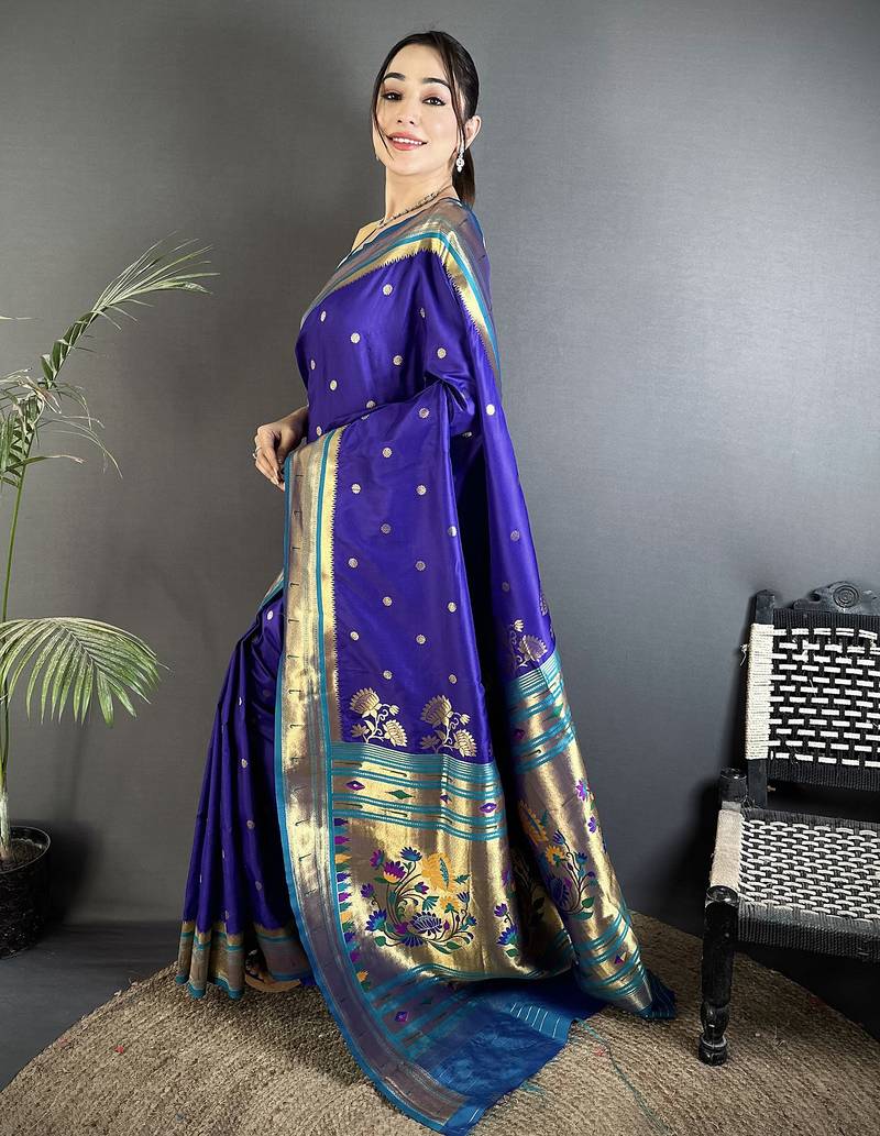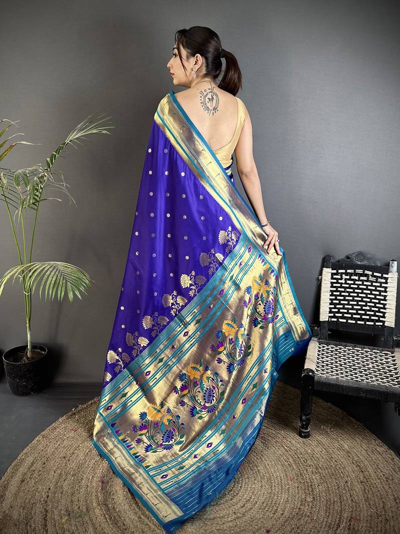 | Product Name | Women Royal Blue Floral Motifs Lichi Silk Saree | |