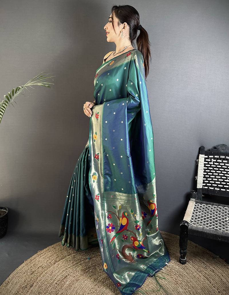 | Product Name | Women Teal Parrot & Floral Woven Design Lichi Silk Saree | |