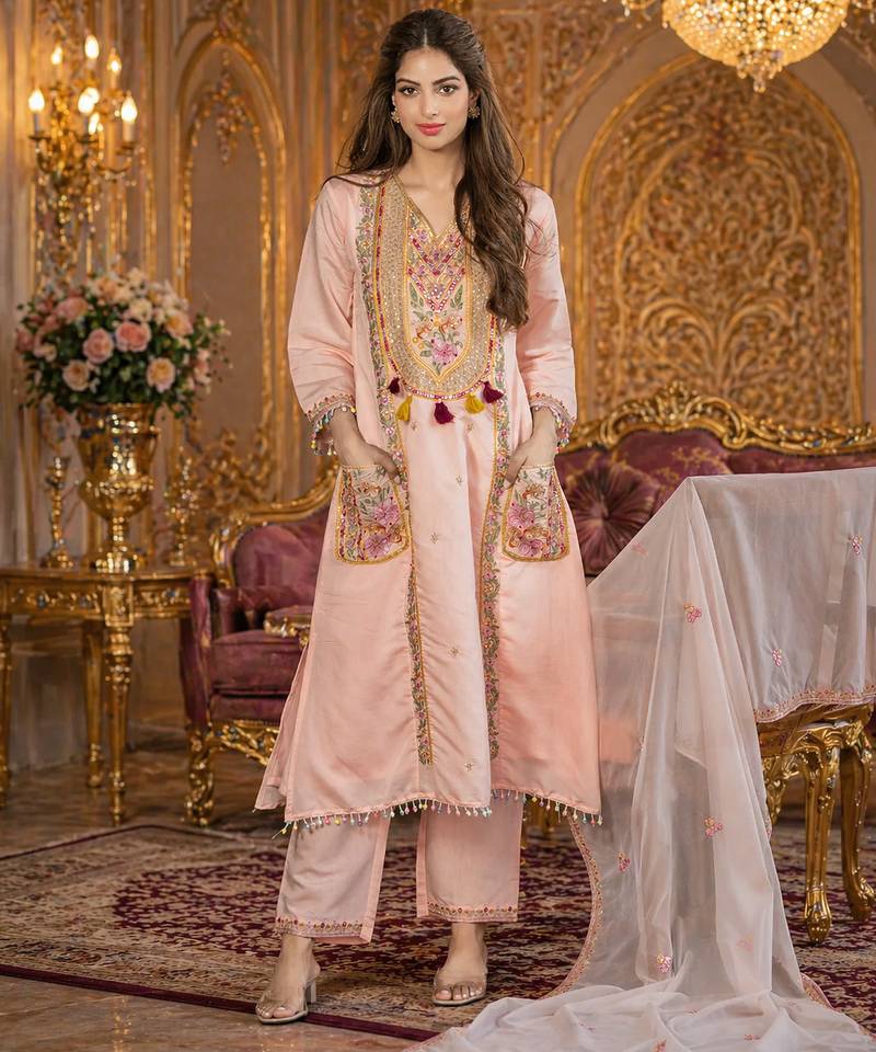 | Product Description | Heavy Chanderi With Embroidery Work |