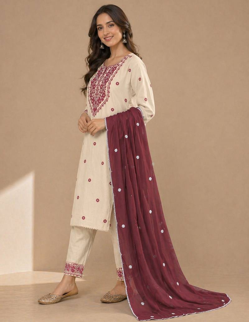 | Product Name | Elegant Off White Embroidered Kurta Set With Brown Dupatta For Women | |