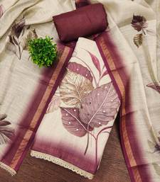 Beige cotton linen printed unstitched dress material