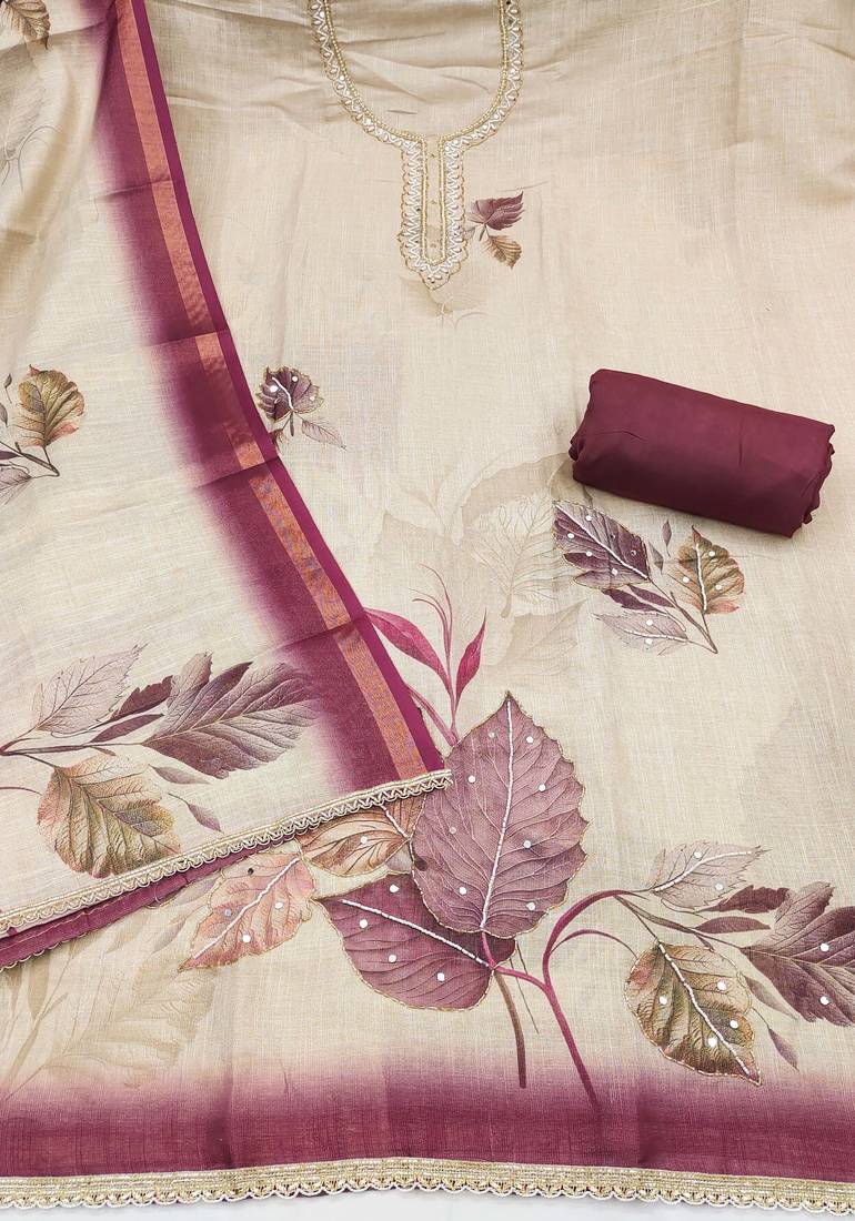 | Product Name | Beige Cotton Linen Printed Unstitched Dress Material | |